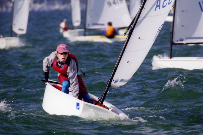 I flew to New York by myself on Jet Blue. It was fun because I got to watch TV for 6 hours. When I landed the head of USODA picked me up and drove me to the yacht club were my host family picked me up. The first morning there was no wind and it was freezing. The next day it was not as cold but it was windy. Down wind I went so fast!!!! The last day we had to run three miles and I won with a time of 24:56. There was not that much wind but we had some races. Then a coach from the Development Team took me to the airport. And on the way back I sat next to two old ladies who talked a lot. It was torture. The next day I woke up early on East Coast time and I was tired the whole day.